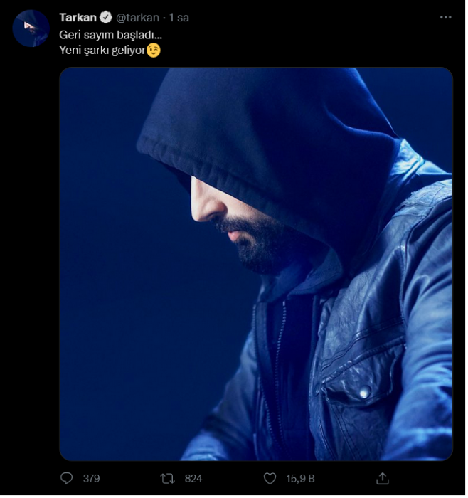 Uzun süredir hayranlarının heyecanla beklediği Tarkan'dan yeni şarkı geliyor. Tarkan'ın paylaşımı şöyle: