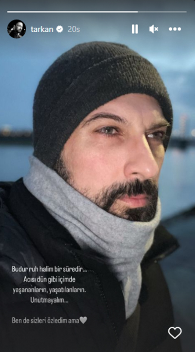 Kahramanmaraş merkezli 7.7 ve 7.6 büyüklüğündeki depremlerin ardından ara verdiği sosyal medyaya geri dönen Tarkan, ”Acısı dün gibi içimde yaşananların, yaşatılanların. Unutmayalım.” dedi.