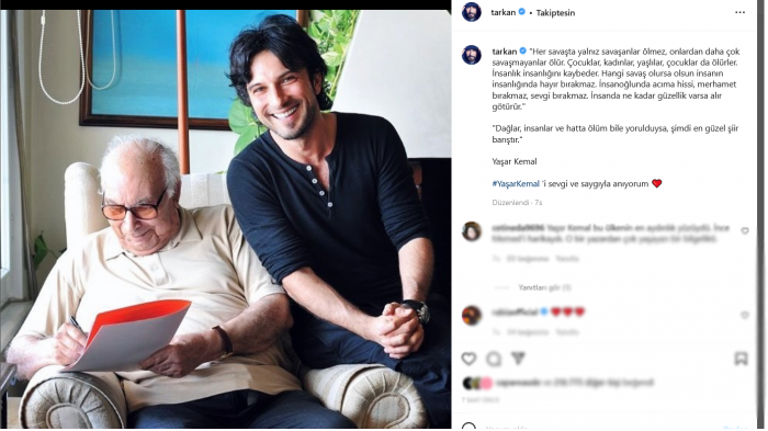 Megastar, Instagram hesabından daha önce usta yazar ile çekildiği fotoğrafını yayınladı. Tarkan, Yaşar Kemal'i, onun satırlarıyla andı:
