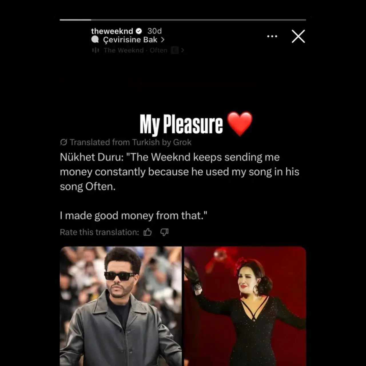 Dünyaca ünlü R&B sanatçısı The Weeknd, usta şarkıcı Nükhet Duru'nun kendisine yönelik açıklamalarına yanıt verdi.