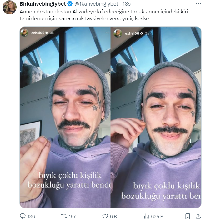 Bir sosyal medya kullanıcısının, “Annen destan destan Alizade'ye laf edeceğine tırnaklarının içindeki kiri temizlemen için sana azcık tavsiyeler verseymiş keşke” notuyla paylaşım yapması üzerine ünlü rapçiye eleştiri yağdı.