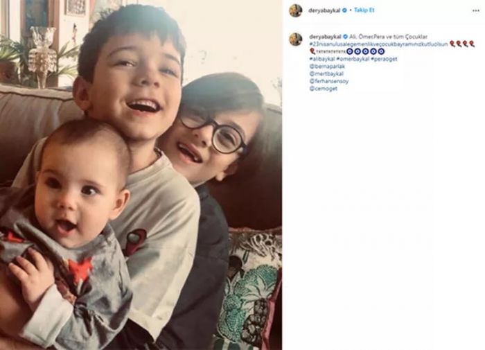 Uzun süredir ekranlardan uzak olan Derya Baykal da 23 Nisan'ı torunlarının fotoğrafını yayınlayarak kutladı. Usta isim, paylaşımına; "Ali, Ömer, Pera ve tüm çocuklar 23 Nisan Ulusal Egemenlik ve Çocuk Bayramı'nız kutlu olsun" notunu düştü.