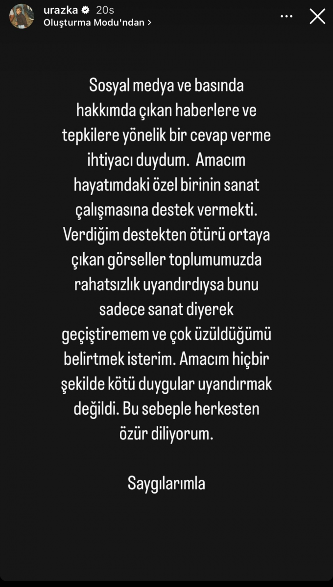 Uraz Kaygılaroğlu, gelen tepkilerin ardından ''Sakin olalım arkadaşlar'' notunu düştüğü bir paylaşım yaptı.