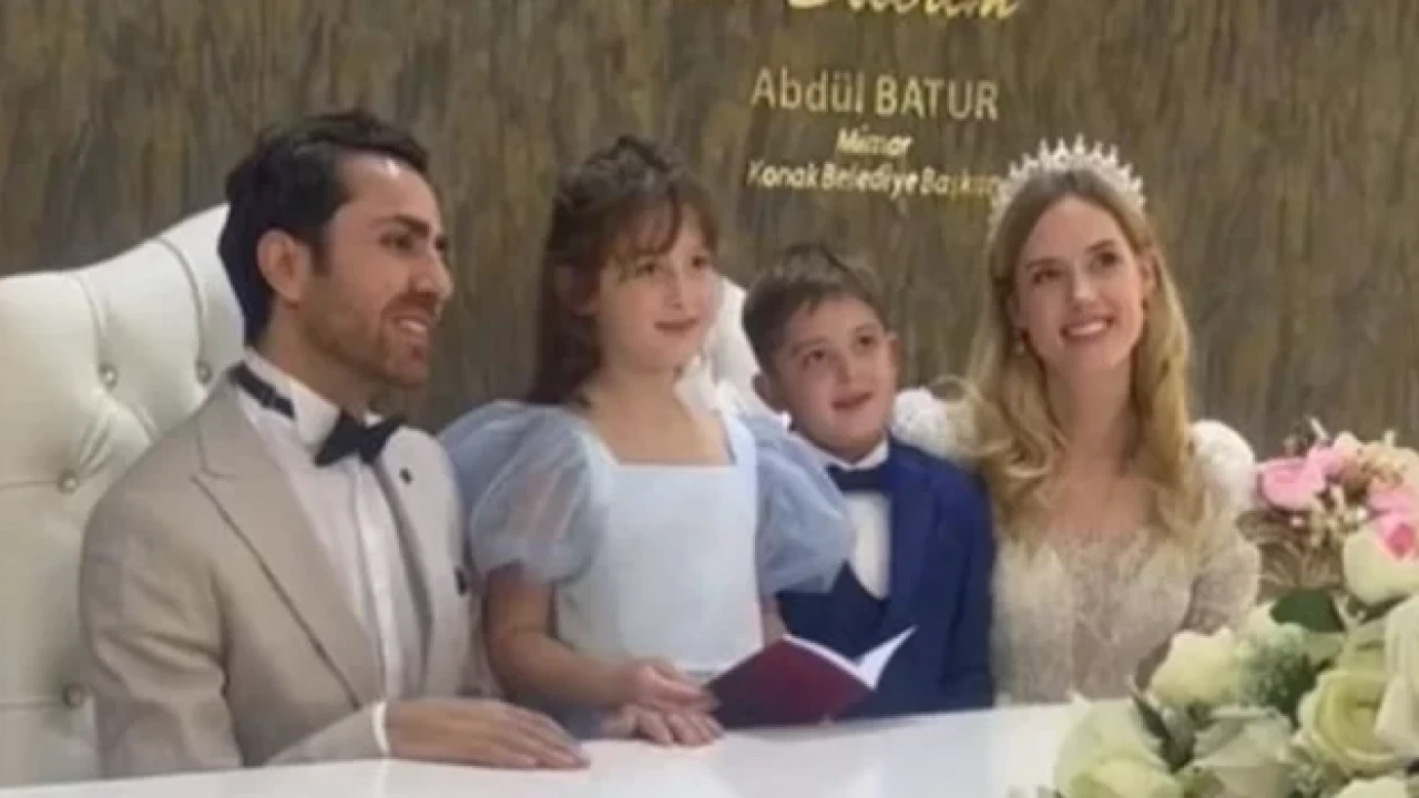 Mehmet Şah Çelik ile İzmir'de evlenen Elles'in nikah törenine ikiz çocukları Melodi ve Milat da katıldı.