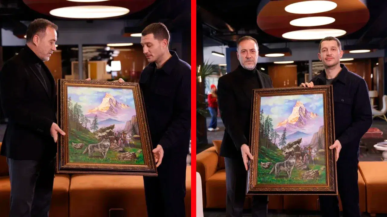 MHP Genel Başkanı Devlet Bahçeli’nin özel hediyesi, MHP'li Volkan Yılmaz aracılığıyla Uraz Kaygılaroğlu’na ulaştırıldı. Kaygılaroğlu’nun büyük bir titizlikle teslim aldığı tablo, Türk mitolojisi ve tarihi açısından derin sembolik anlamlar taşıyor. Tablonun içeriği hakkında bilgi veren Volkan Yılmaz, eserin Türklerin Ergenekon’dan çıkışını ve Tanrı Dağı eteklerindeki yeniden diriliş destanını simgelediğini belirtti.