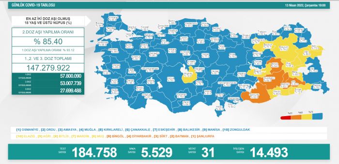Türkiye'de koronavirüs nedeniyle son 24 saatte 31 kişi yaşamını yitirdi, 5 bin 529 yeni vaka tespit edildi.