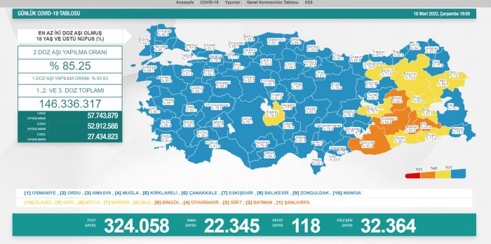 Son 24 saatte 324 bin 58 COVID-19 testi yapıldı, 22 bin 345 kişinin testi pozitif çıktı.