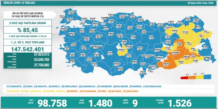 Muhalif. SAĞLIK 8 Mayıs 2022 Türkiye Koronavirüs tablosu
