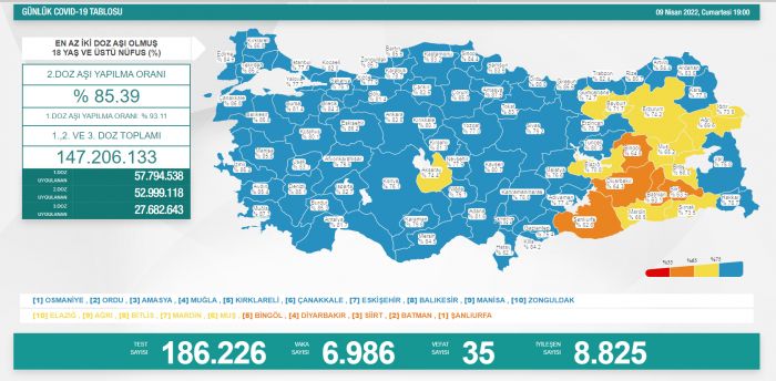Muhalif. SAĞLIK 9 Nisan 2022 Türkiye günlük Koronavirüs tablosu