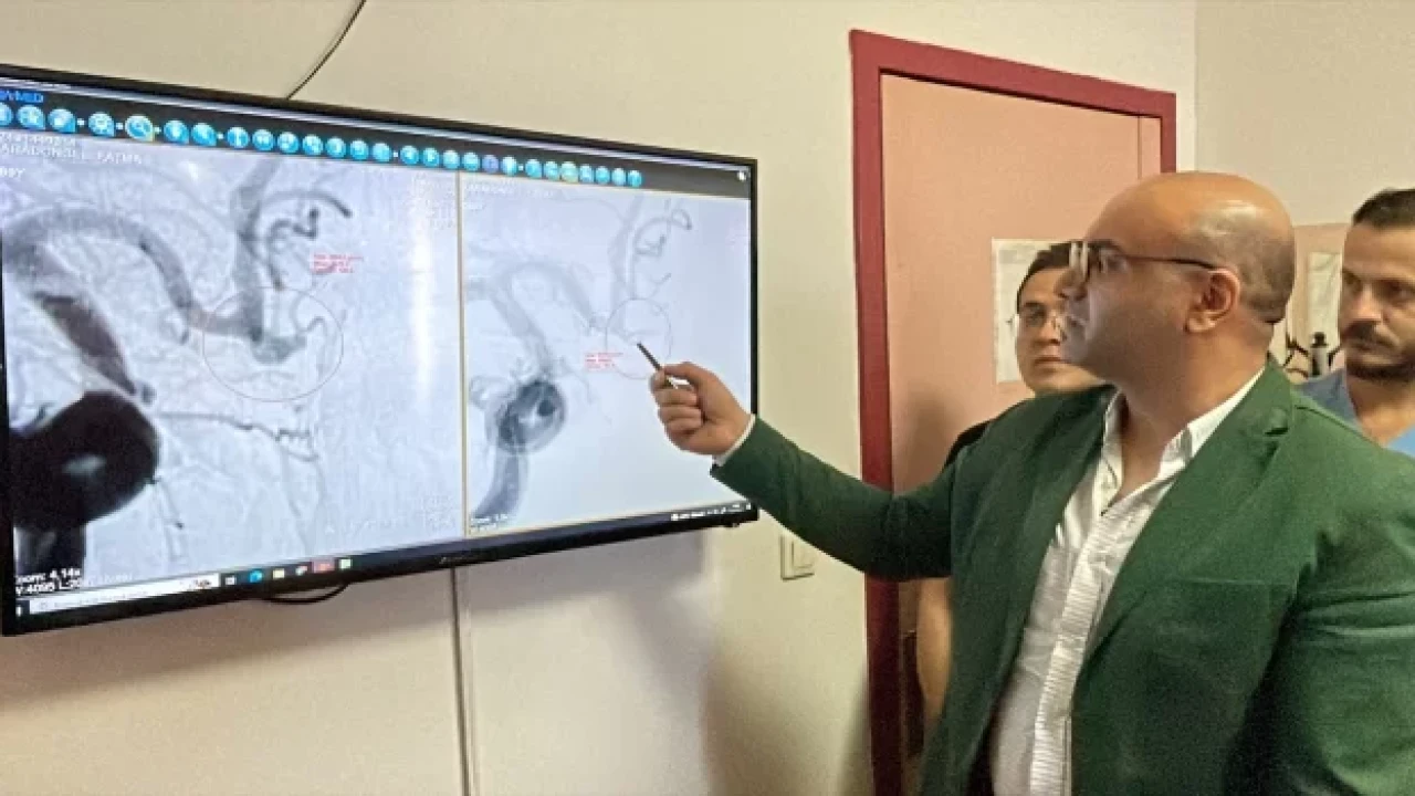 "Bu ameliyatın can alıcı noktası şudur; bu tip işlemler kafatası açılarak yapıldığında yani açık cerrahiyle yapıldığında yaklaşık 56 saati bulabilmekte. Açık cerrahinin kendine göre birtakım komplikasyonları (yan etkisi) var. Kapalı tedavi ile çok daha hızlı bir şekilde bu anevrizmalar kapatılabilmekte. Bu hastanın işlemi de yaklaşık 1 saat 15 dakika sürdü. Hastanın herhangi bir yara izi olmuyor, sadece kasık bölgesinde vatandaşımızın bildiği kalp işlemi sırasında yapılan anjiyo kadar küçük bir delik oluyor. Bu işlemin böyle bir avantajı var. Beyinde ulaşılması zor, açık cerrahisinin mümkün olmayacağı beyin damar baloncuğu hastalıklarına da buradan müdahale edebiliyoruz, en büyük avantajımız bu."