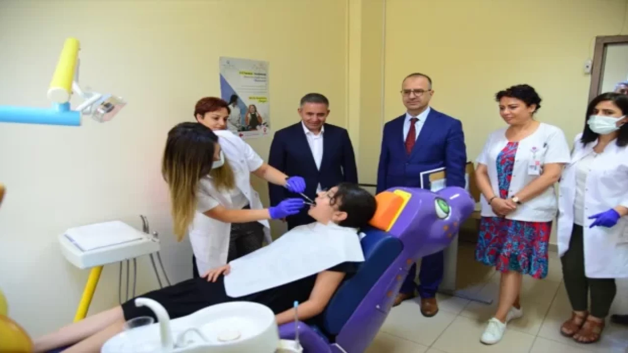 Valilikten yapılan açıklamaya göre, Ağız ve Diş Sağlığı Merkezi'ni ziyaret eden Vali Hüdayar Mete Buhara, yetkililerden çalışmalar hakkında bilgi alarak aile diş hekimliği uygulamasıyla ilgili çalışmaları değerlendirdi.
