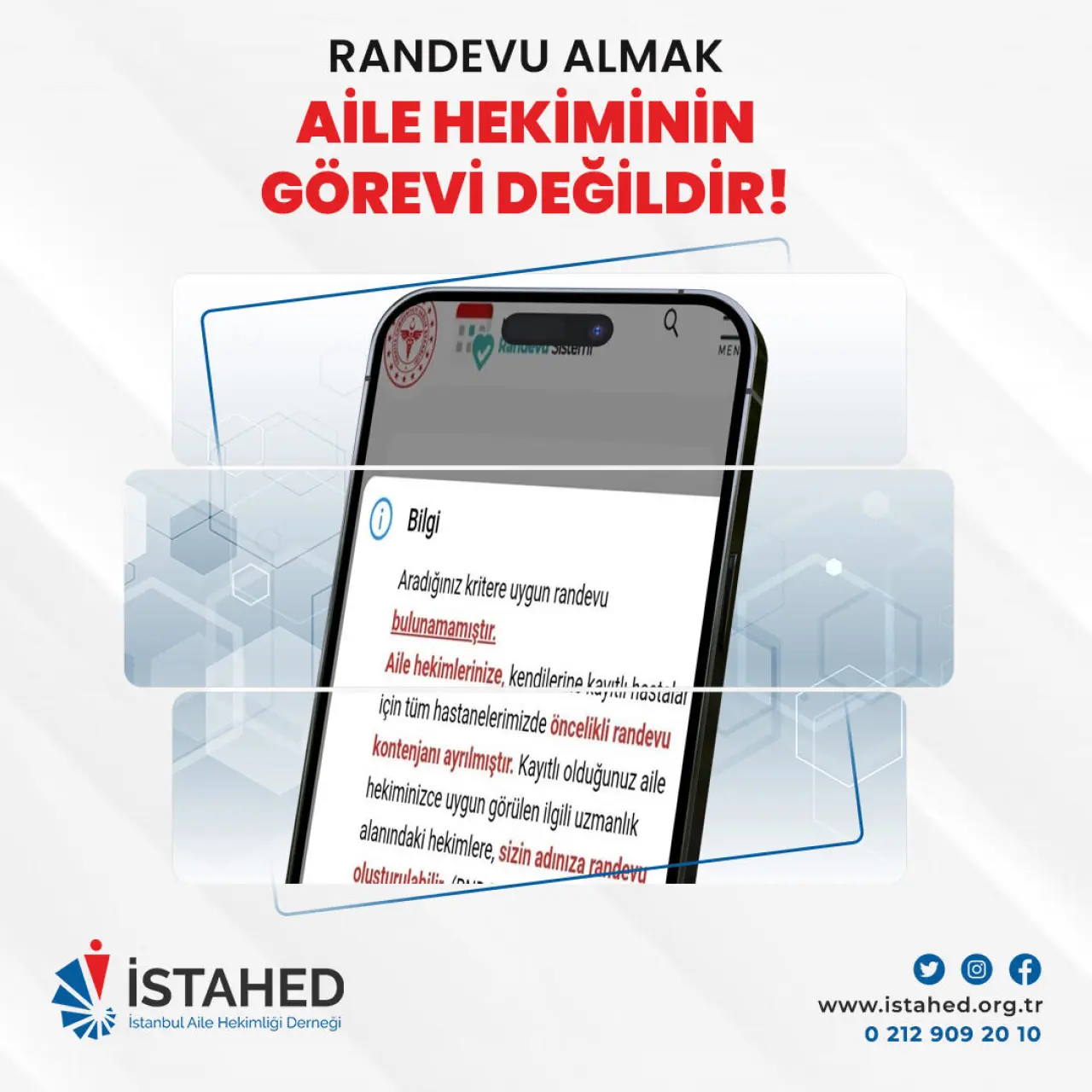 Sağlık Bakanlığı tarafından başlatılan yeni uygulamada, hastanelerden randevu alamayan vatandaşlara MHRS üzerinden “Aile hekiminize başvurun, sizin adınıza hastaneden randevu oluşturabilir” mesajı gönderiliyor. Ancak İSTAHED, bu sistemin bir sevk zinciri olmadığını ve vatandaşların hastaneye doğrudan randevu alma hakkının devam ettiğini vurguladı.