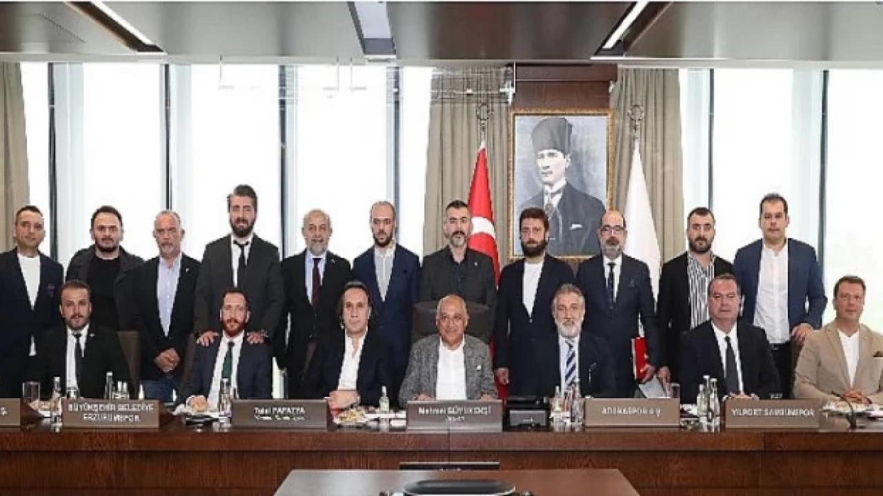 TFF Hasan Doğan Milli Takımlar Kamp ve Eğitim Tesisleri’nde gerçekleşen görüşmeye 1. Lig Kulüplerinden Sorumlu TFF Yönetim Kurulu Üyesi Talat Papatya ve Genel Sekreter Kadir Kardaş ile 1. Lig Kulüplerinin temsilcileri katıldı.
