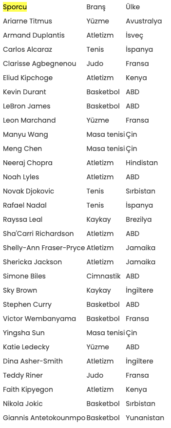2024 Paris Olimpiyat Oyunları’nda gözlerin üstünde olacağı ve performansları merakla beklenen sporcular şunlar: