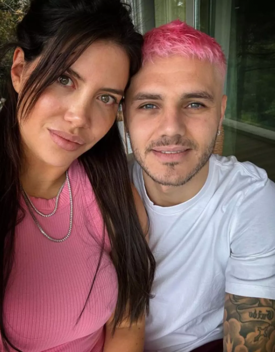 Eşi Wanda Nara ile bir fotoğraf paylaşan Mauro Icardi'nin pembe saçları sosyal medyayı salladı.