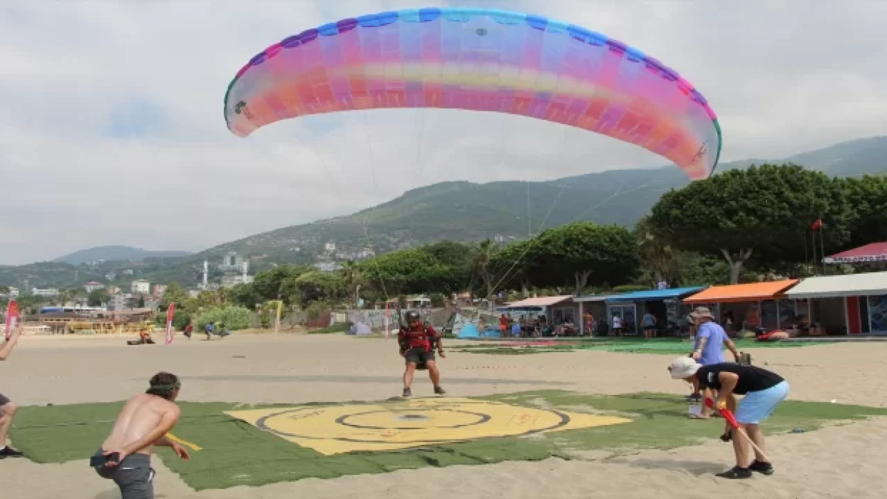 Organizasyonun ilk turunda sporcular, yaklaşık 10 dakika havada kaldıktan sonra Kleopatra Plajı'ndaki belirlenen alana iniş yaptı.