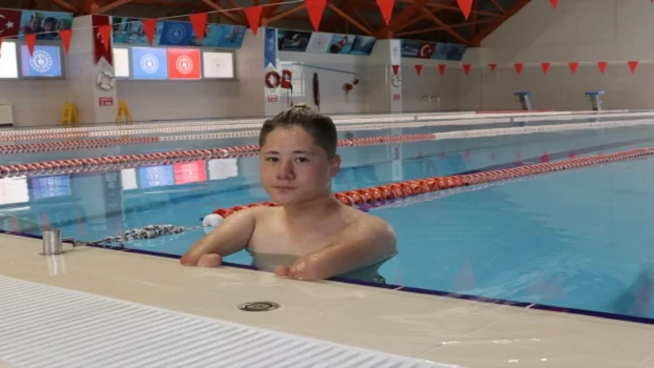 YOZGAT (AA) Samsun'da katıldığı turnuvada 6 stilde Türkiye birinciliği elde eden 14 yaşındaki bedensel engelli yüzücü Muhammet Enes Sarı, milli takıma girmeyi hedefliyor.