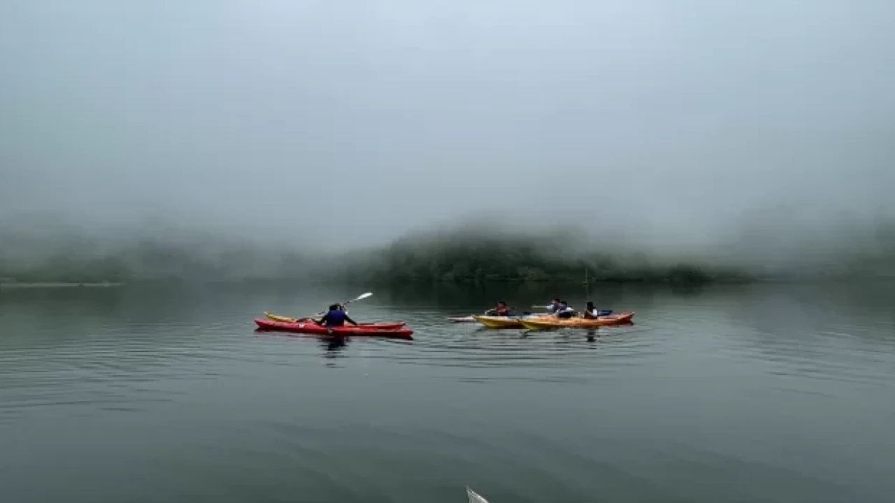 Antrenman sırasında göl üzerinde, yer yer etkili olan sis de görsel şölen sundu.