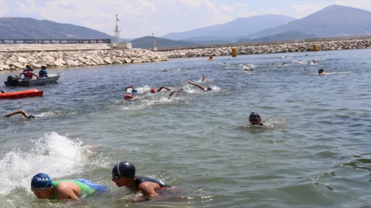 Eğirdir Belediyesince liman bölgesinde gerçekleştirilen etkinlikte yaklaşık 450 sporcu yüzme, bisiklet ve koşu parkurlarında ter döktü.