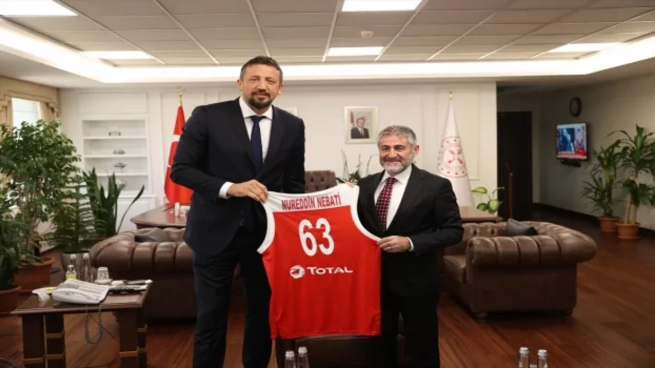 Bakan Nebati'nin makamında gerçekleşen ziyarette, TBF Başkanı Türkoğlu'nun yanı sıra yönetim kurulu üyeleri de yer aldı.