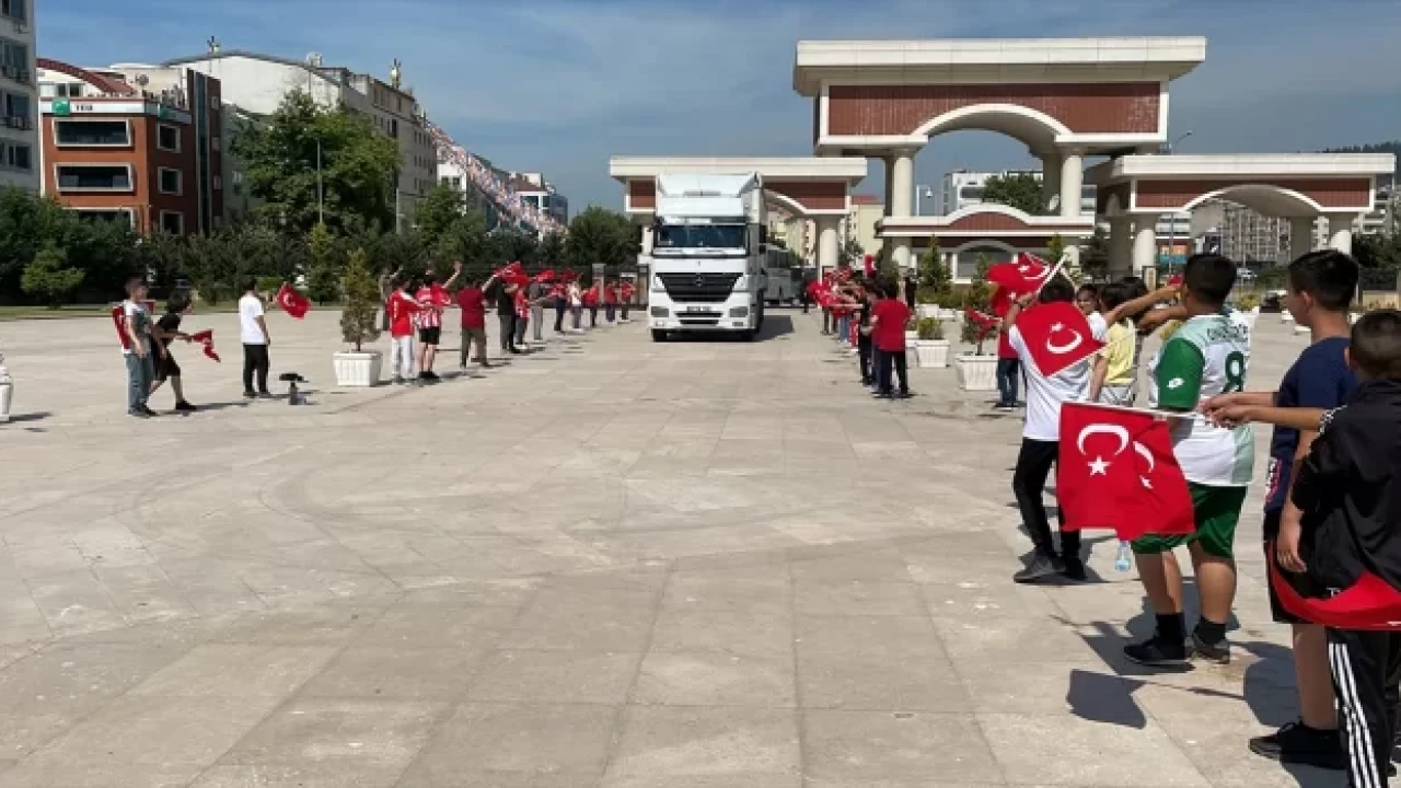 Kentteki 10 okula dağıtılacak 845 spor malzemesini taşıyan tır, Kocaeli Valiliği Kampüsü'nde Vali Seddar Yavuz ve öğrenciler tarafından karşılandı.