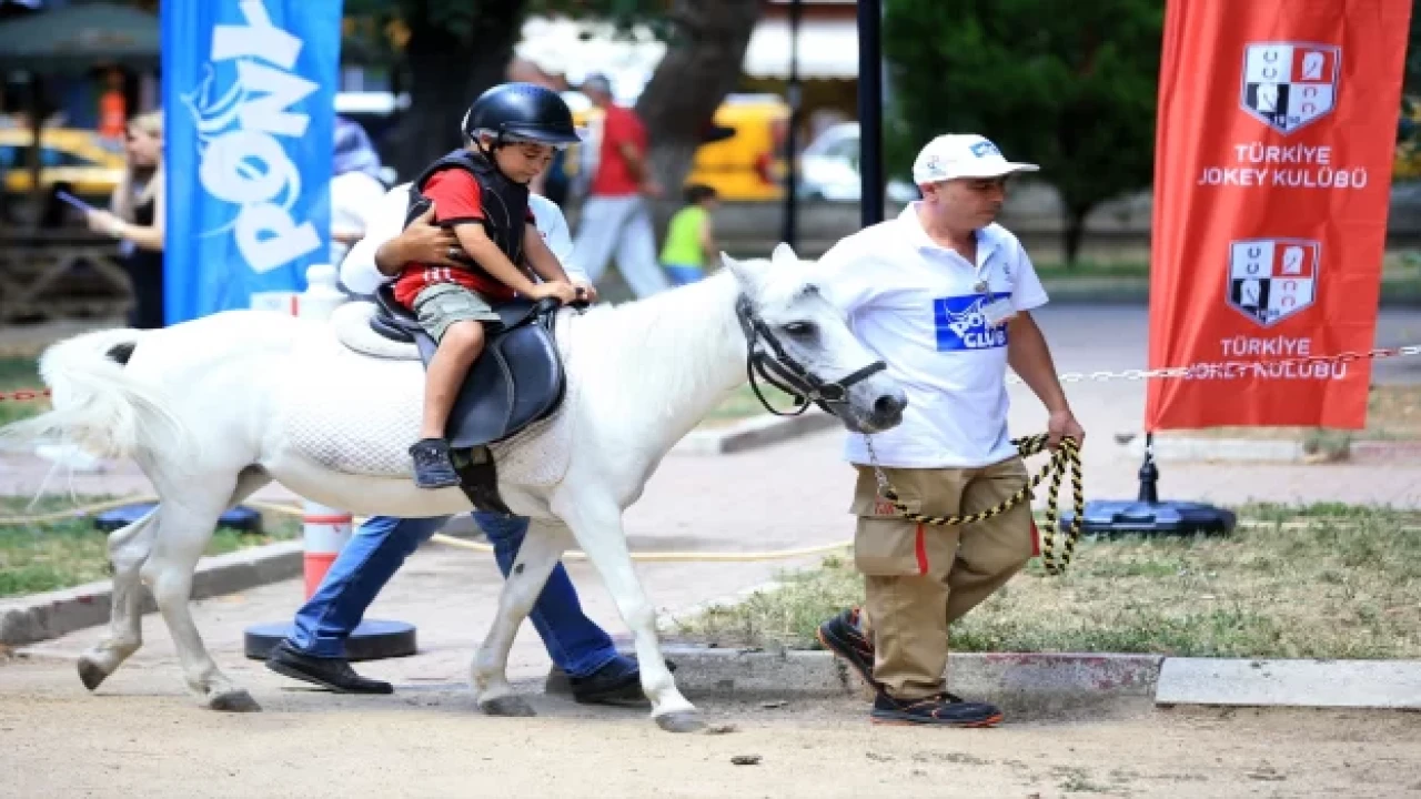 Sosyal sorumluluk projesi kapsamında Şevket Dingiloğlu Parkı'nda oluşturulan parkurda çocuklar, gözetmenler eşliğinde atlara bindirilerek tur attı. Görevliler tarafından çocuklara atlar hakkında bilgi verildi.