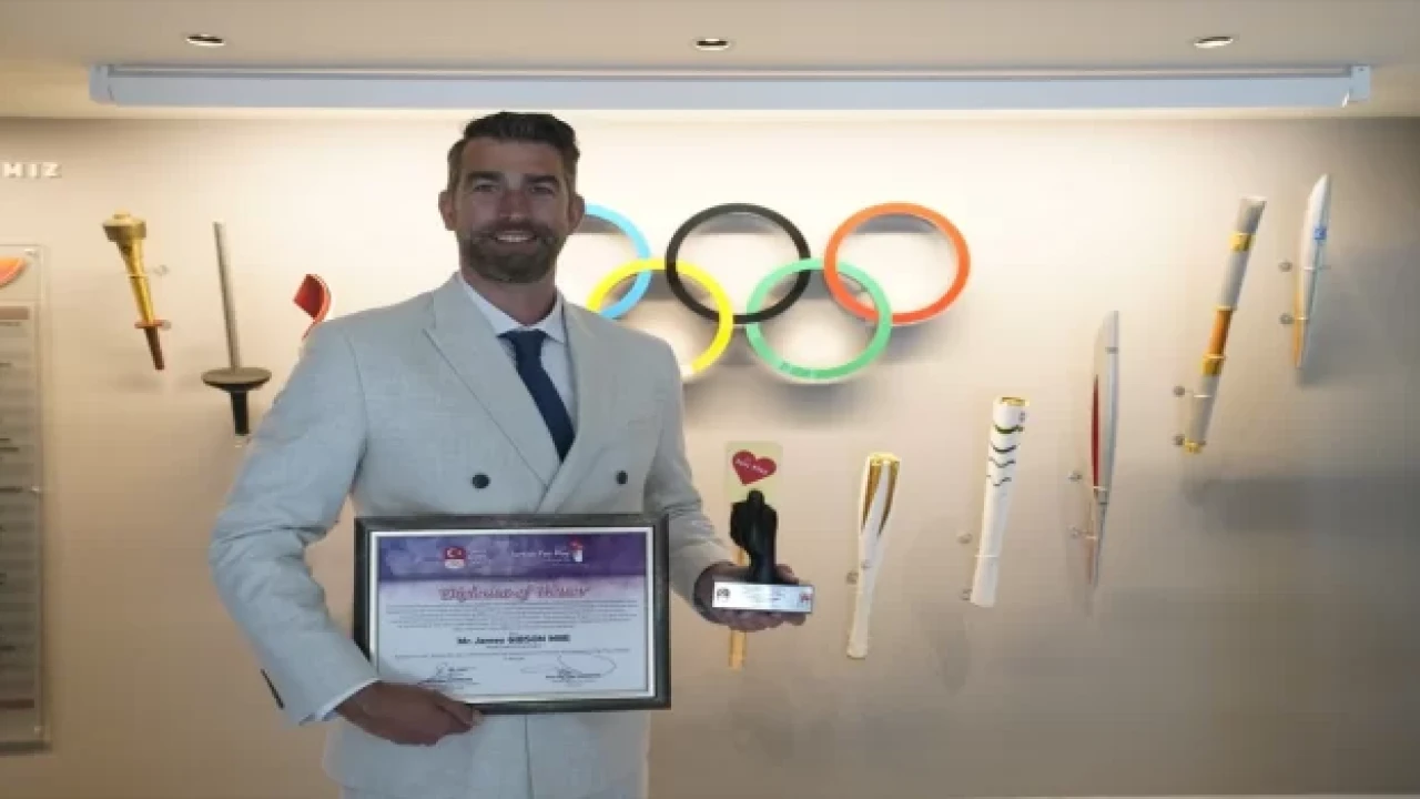 ANKARA (AA) Türkiye Milli Olimpiyat Komitesi (TMOK) tarafından düzenlenen 2021 FairPlay Ödülleri kapsamında tanıtım dalında "Şeref Diploması" ödülünü kazanan İngiliz eski milli yüzücü James Gibson için tören düzenledi.