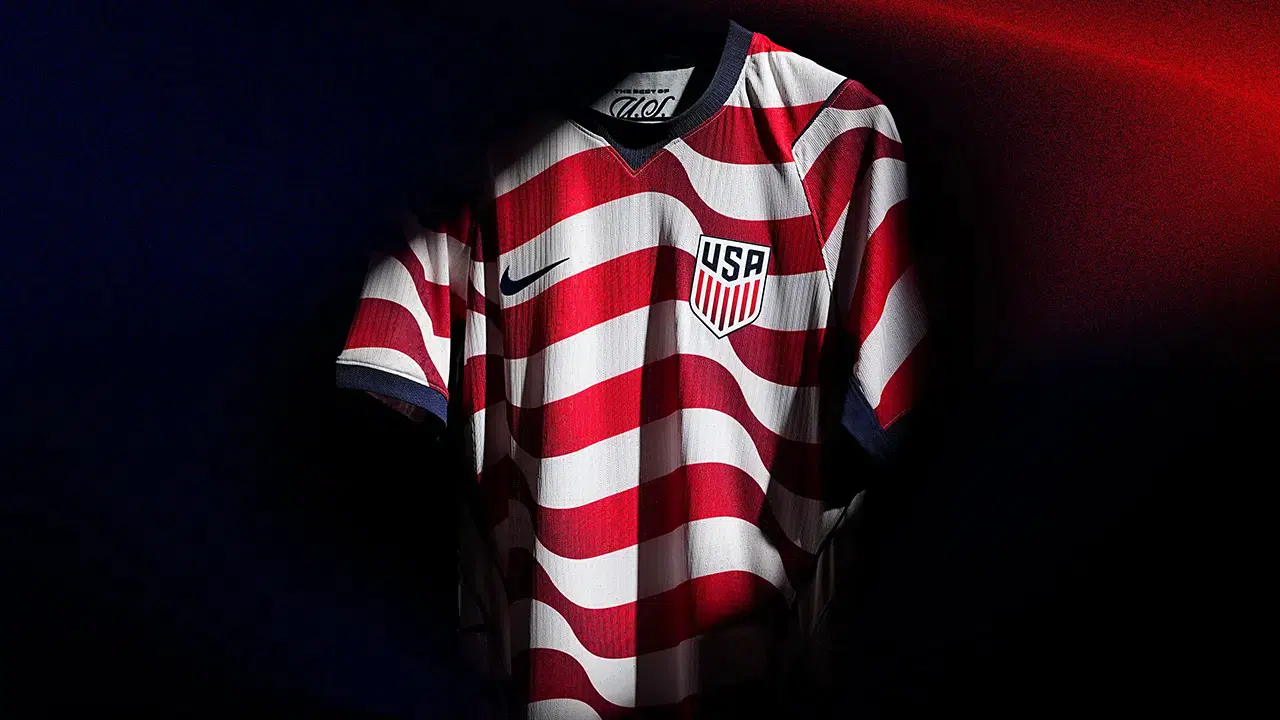 ABD Futbol Federasyonu ve Nike, pazartesi günü yaptıkları açıklamayla ABD Erkek Milli Takımı'nın 2026 Dünya Kupası için hazırlanan iç ve dış saha formalarını resmi olarak tanıttı. İç saha forması, yatay olarak uzanan dalgalı kırmızı ve beyaz çizgileriyle doğrudan Amerikan bayrağını anımsatıyor. Oyuncuların şimdiden favorisi haline geldiği belirtilen deplasman forması ise üzerinde metalik yıldızların yer aldığı koyu bir "obsidyen" rengine sahip.