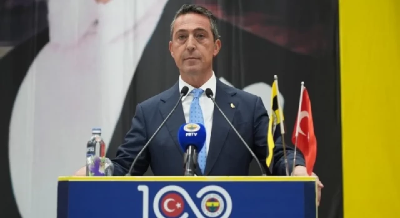 Fenerbahçe Kulübü Başkanı Ali Koç, sarı lacivertli kulübün Ülker Stadı'ndaki seçimli olağan genel kurul toplantısında bir açıklama yapıyor.