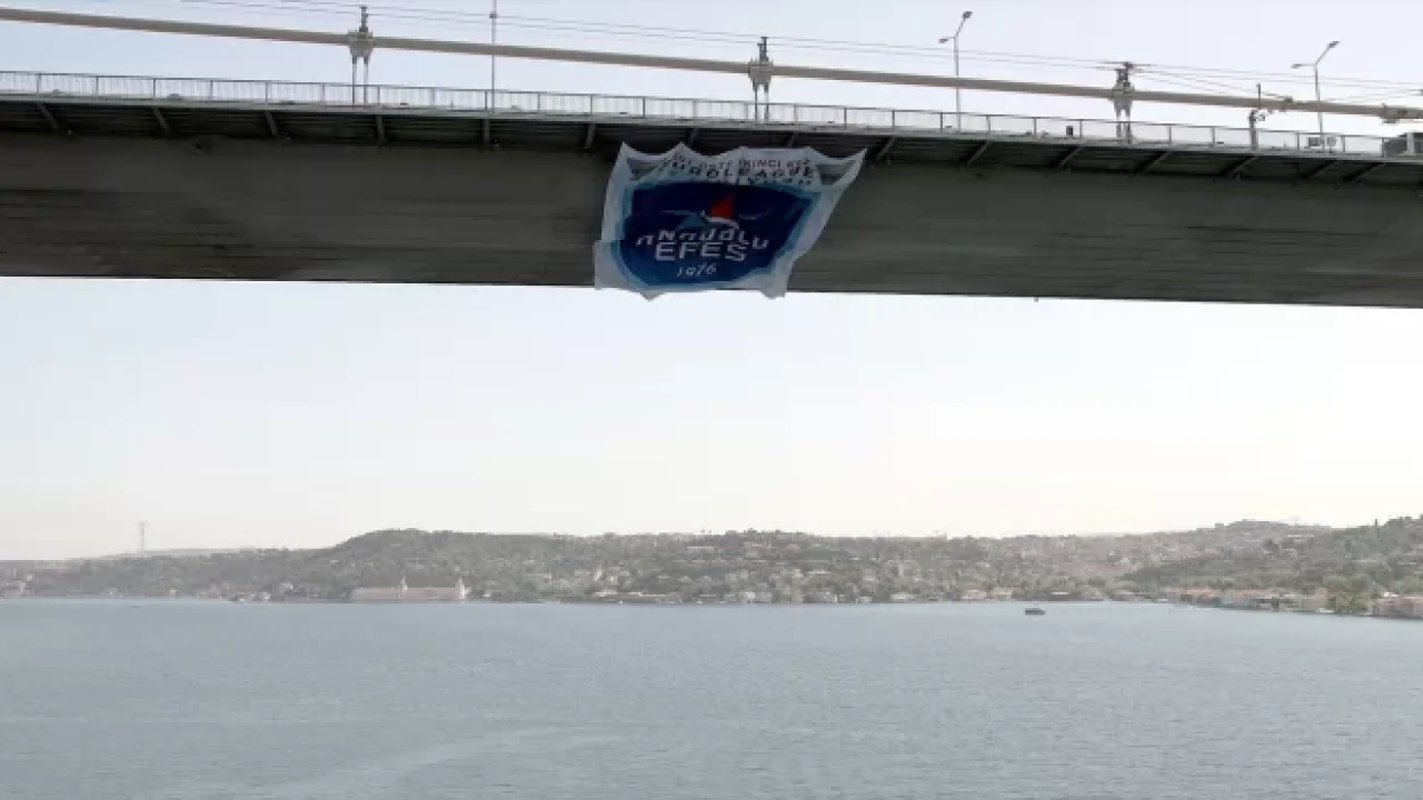Türk basketbolunun en çok kupa kazanan takımı Anadolu Efes, şampiyon olan İstanbul takımlarının boğaz köprülerine bayrak asma geleneğine bu yıl da katıldı.