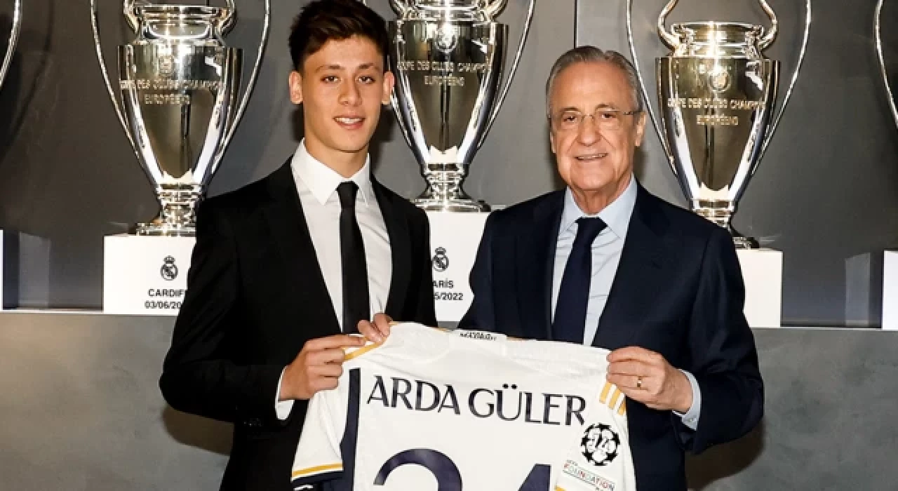 Valdebebas'ta Real Madrid'in Spor Şehri'nde başkan Florentino Peres ile sözleşme imzalayan Arda Güler, İspanyol ekibinde 24 numaralı forma ile mücadele edecek.