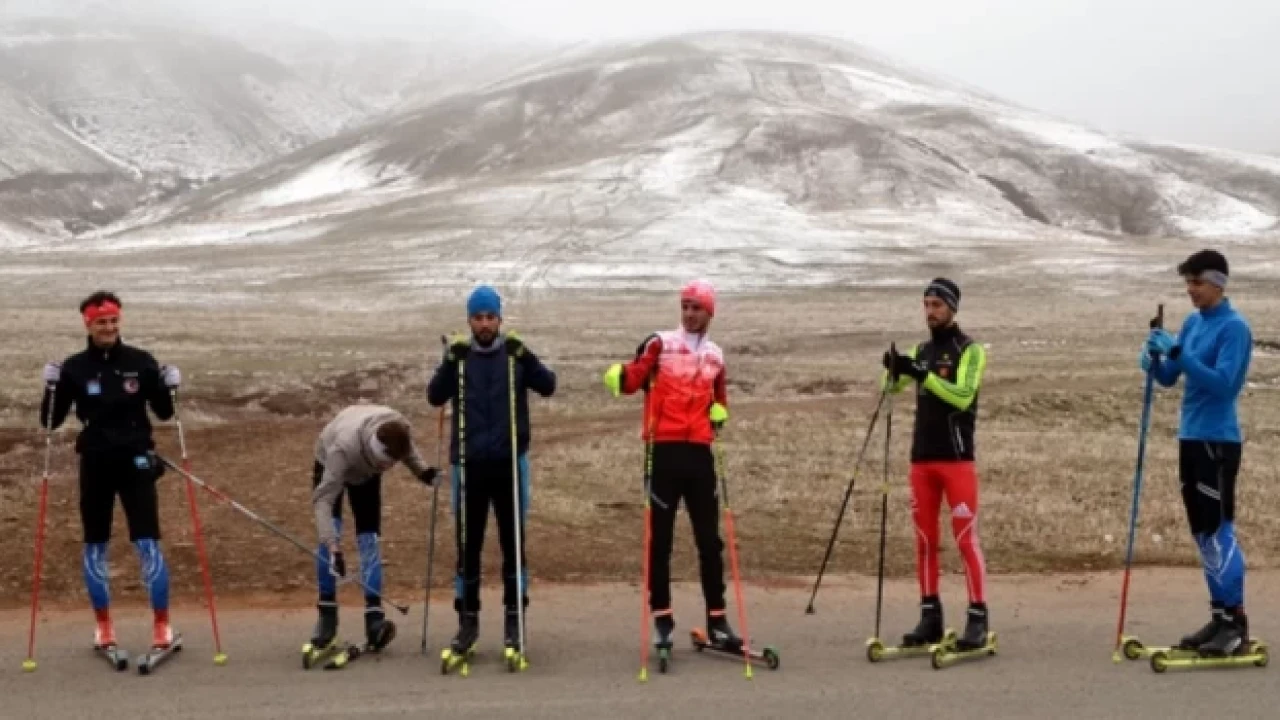Kentte kar yağmaması nedeniyle asfaltta antrenman yapan sporcular, şampiyonadan dereceyle dönmeyi hedefliyor.
