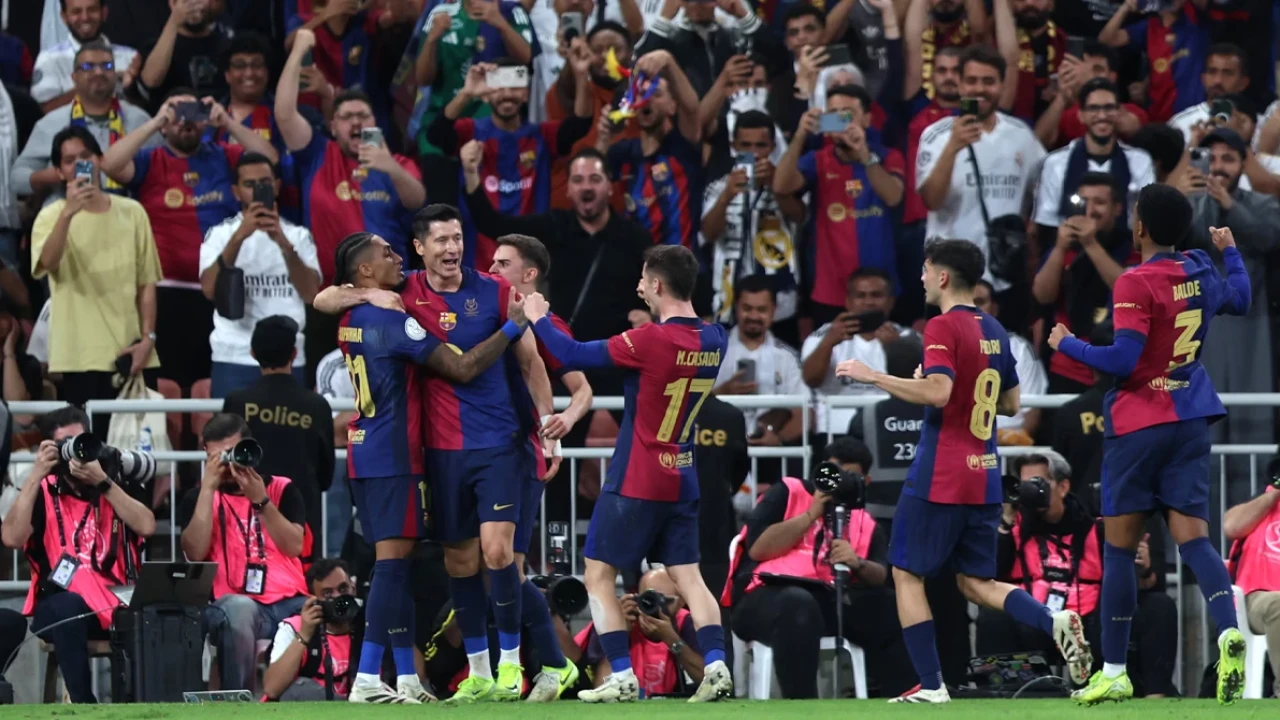İspanya Süper Kupası finalinde, futbolseverler Suudi Arabistan’ın Cidde kentindeki Kral Abdullah Spor Şehri Stadyumu’nda büyük bir mücadeleye tanıklık etti. Barcelona, 1-0 geriye düştüğü maçta Real Madrid’i 5-2 mağlup ederek kupayı kazandı.