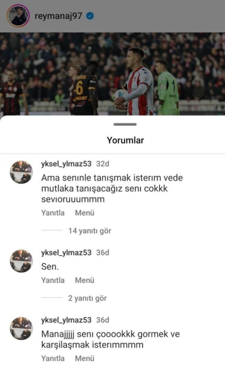 Sosyal medya üzerinden özür dileyen Rey Manaj, "Daha önce böyle bir şey yaşadığım için üzgünüm, geçmiş olsun Barış Alper" ifadelerini kullandı. Ancak Barış Alper’in babası Yüksel Yılmaz, bu duruma sosyal medyadan ilginç bir tepki verdi. Yüksel Yılmaz, "Manaj seni çok görmek ve seninle çok karşılaşmak isterim. Mutlaka tanışacağız" şeklinde bir yorum yaparak dikkatleri üzerine çekti.