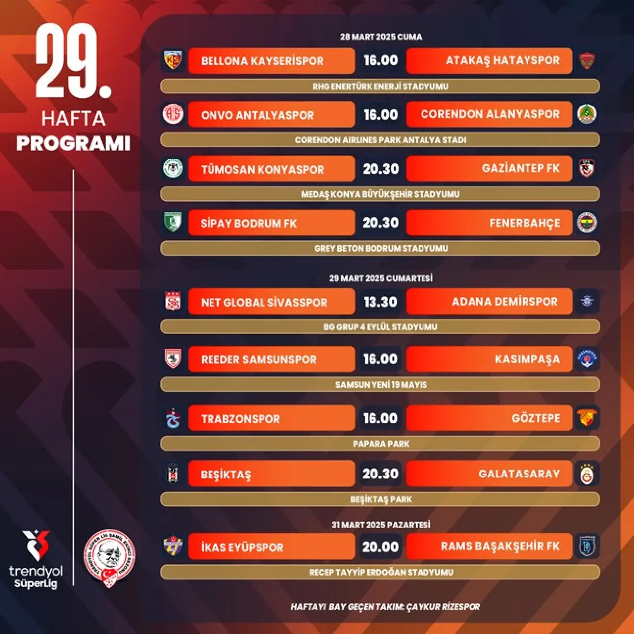 Trendyol Süper Lig'de 29 ve 30. haftaların maç programı şöyle: