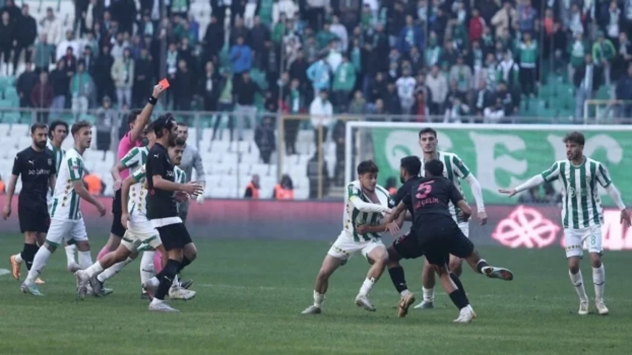 Yaşanan arbede sonrasında hakem Burak Taşkınsoy, Bursasporlu Çağatay Yılmaz'a ikinci sarı karttan kırmızı kart gösterdi.
