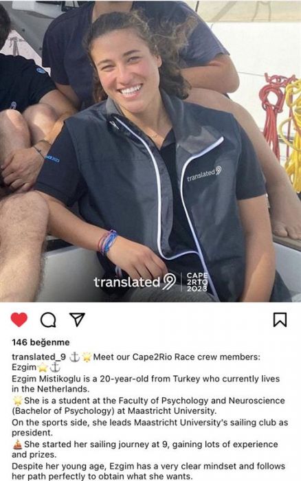 Cape2Rio Yarış ekibi üyelerinden Ezgim Mıstıkoğlu, şu anda Hollanda'da yaşayan 20 yaşında bir Türk genci, Maastricht Üniversitesi Psikoloji ve Nörobilim Fakültesinde (Psikoloji Lisansı) öğrencisi. Ezgim aynı zamanda Maastricht Üniversitesi'nin yelken kulübünü başkan olarak yönetiyor.