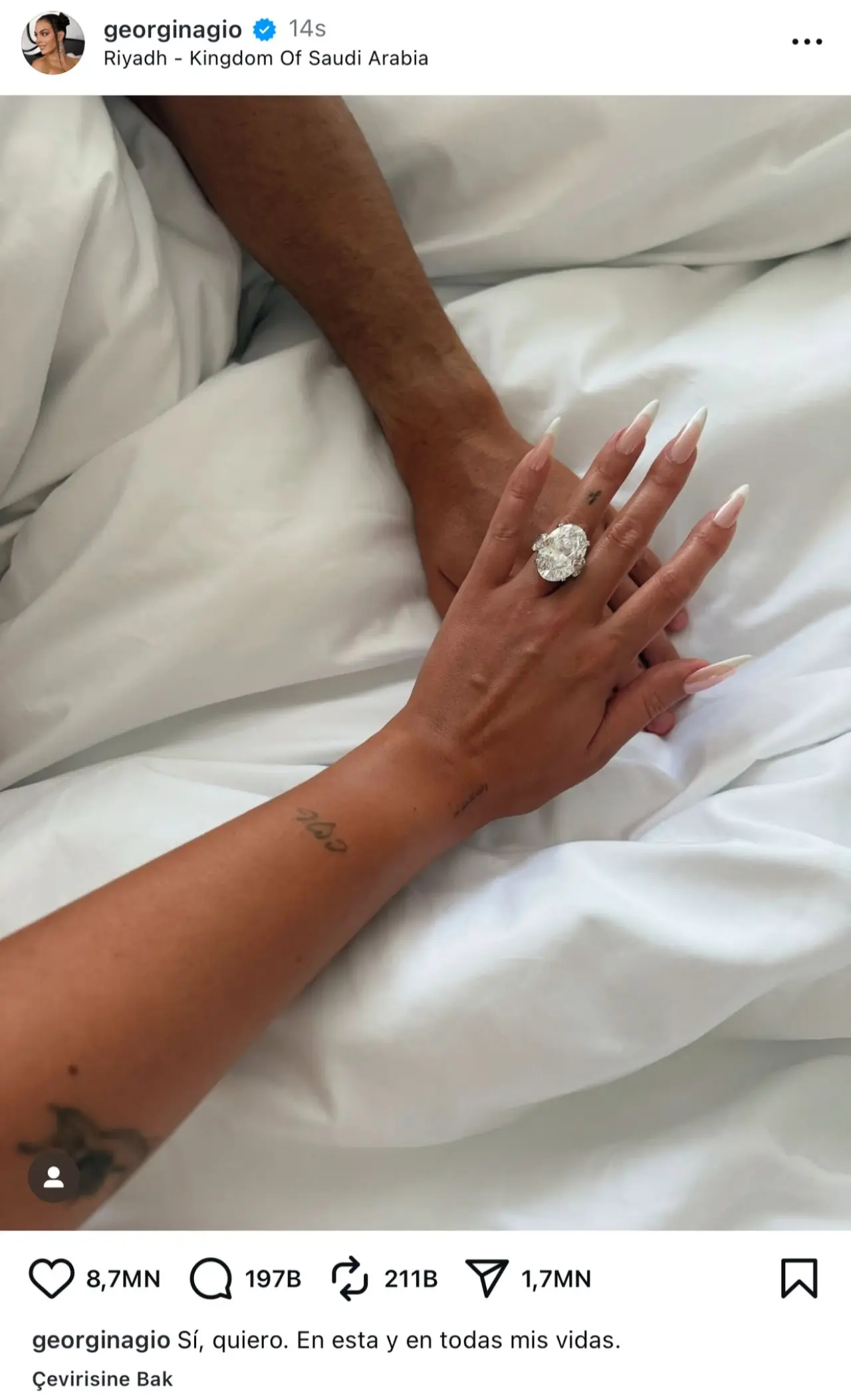 Rodriguez, parmağındaki büyük yüzüğün fotoğrafını paylaşarak İspanyolca “Evet dedim. Bu hayatımda ve tüm hayatlarımda” notunu düştü. Paylaşım kısa sürede büyük ilgi topladı.