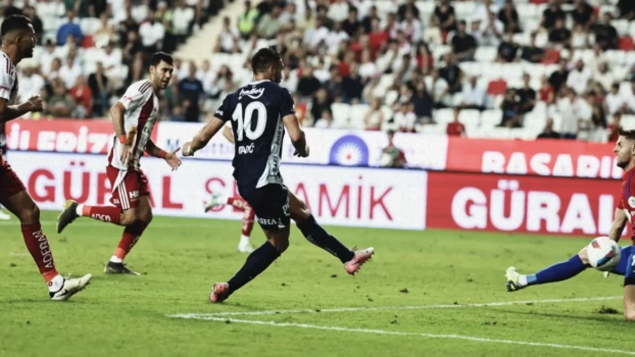 Karşılaşmada 12. dakikada oynanırken bu kez Antalyaspor direğe takıldı. Jakub Kaluzinski'in ceza sahası dışından kaleye gönderdiği sert şutunda, önce Alexander Djiku'ya ardından sağ direğe çarpan topa Dominik Livakovic hakim olmayı başardı.