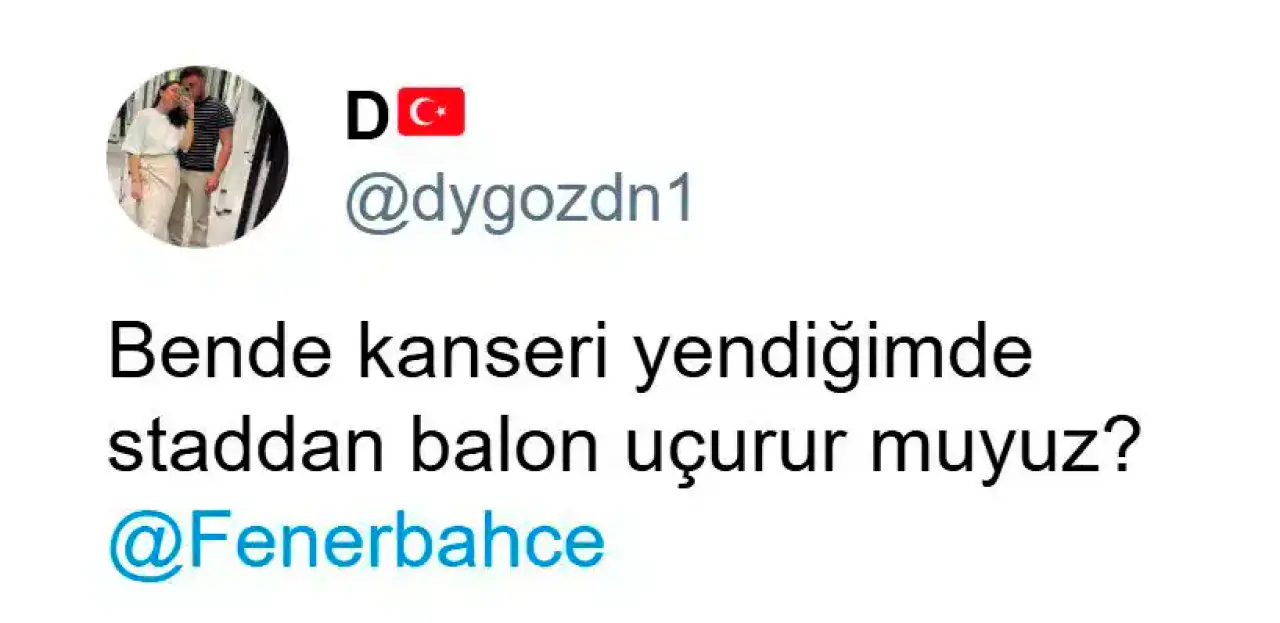Fenerbahçe taraftarı Duygu Özdin yakalandığı kanser hastalığı sonrasında, “Kanseri yendiğimde statta balon uçurur muyuz?” paylaşımı yapmıştı.