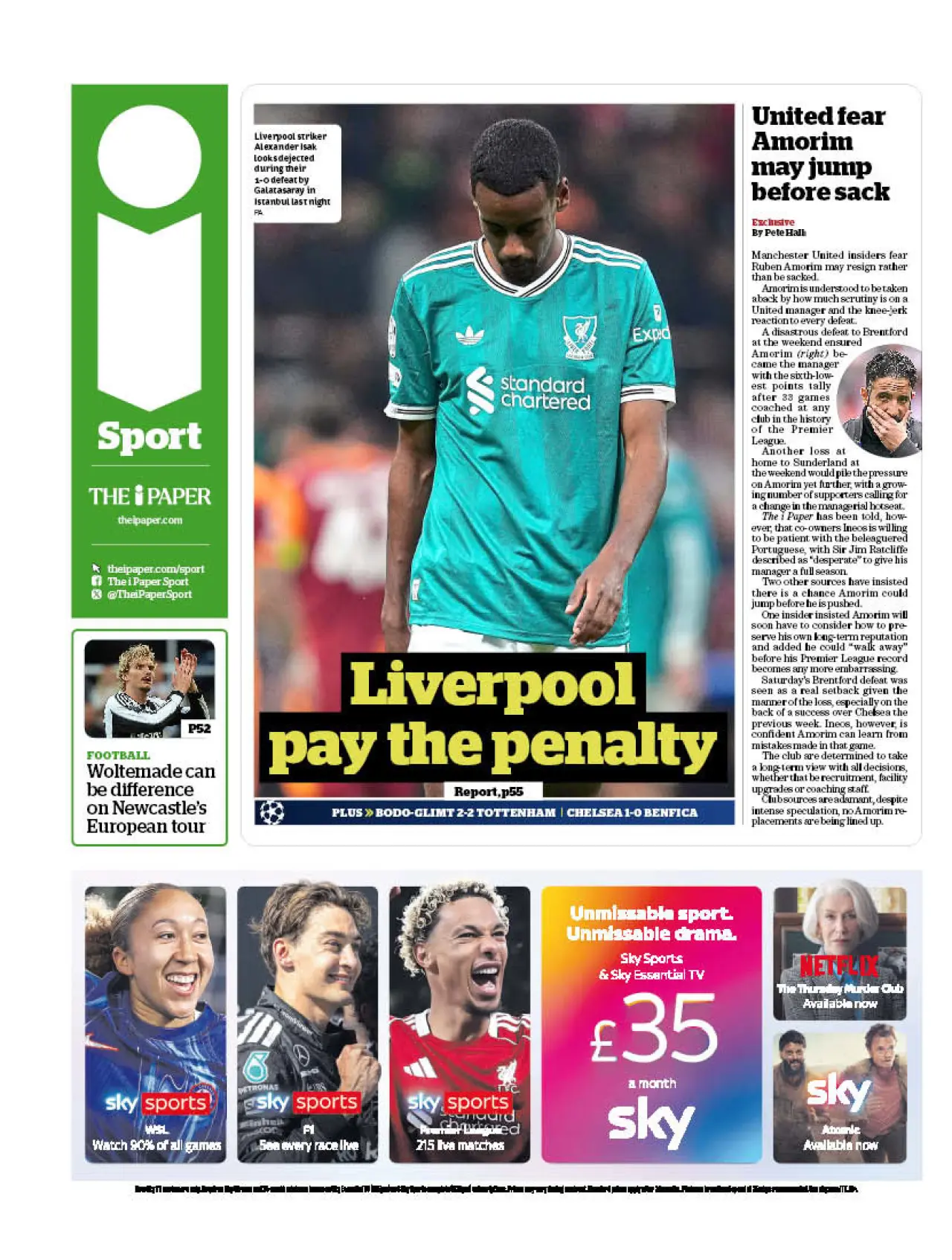 The i Paper Sport “ Liverpool cezasını ödedi” ifadelerini manşetine taşıdı.