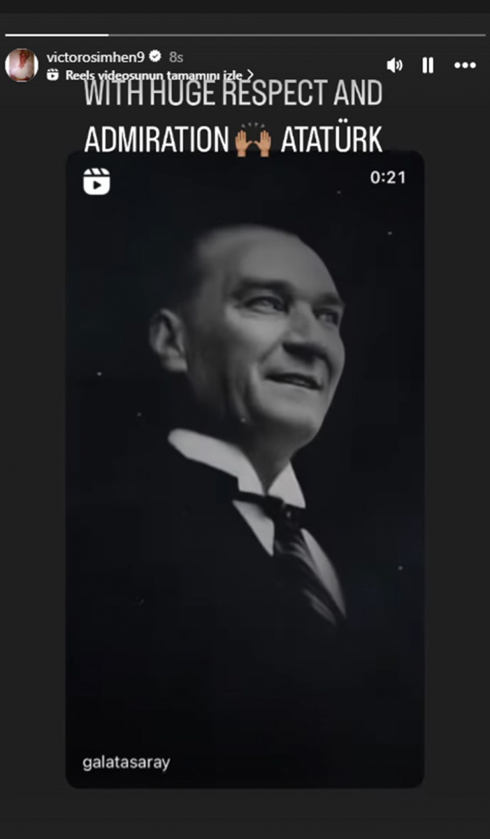 Osimhen sosyal medya hesabından yaptığı paylaşımda "Büyük saygı ve hayranlıkla… Atatürk!" ifadelerini kullandı.
