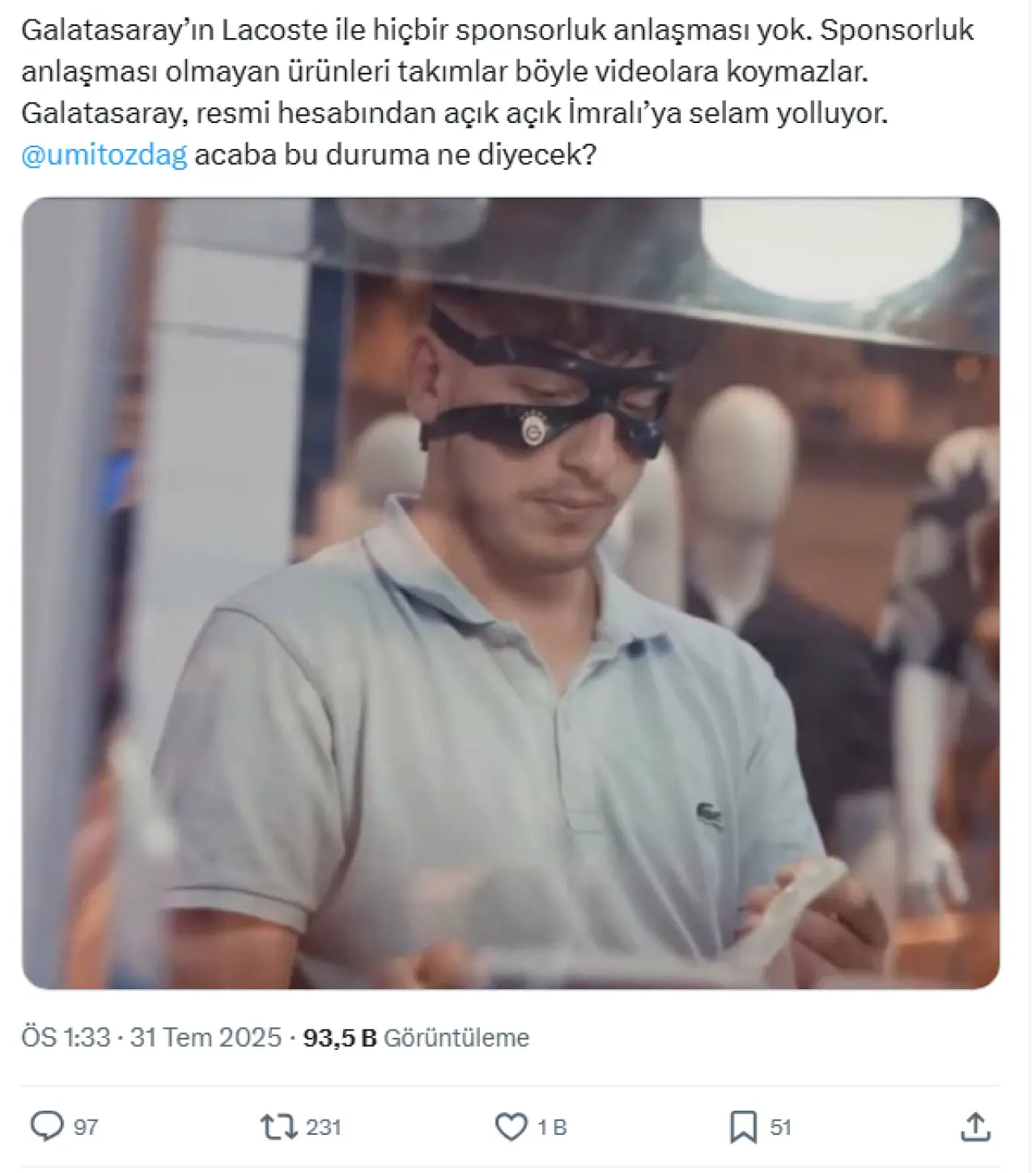 Galatasaray'ın Victor Osimhen transferi için yayınladığı tanıtım videosundaki giyilen tişörtler sosyal medyaya damga vurdu. Tişörtlerden birisinin Ederson transferini işaret ettiği öne sürülürken, diğer tişörtün terörist başı Abdullah Öcalan’ın giydiği Lacoste tişörtle bire bir aynı olduğu iddia edildi.