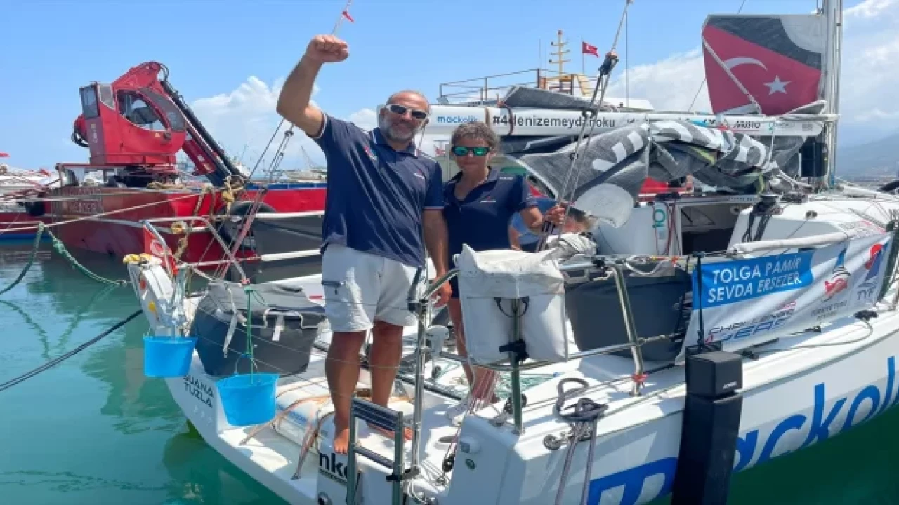 İki yelken sporcusu, Karadeniz, Marmara, Ege ve Akdeniz'i rüzgar gücüyle geçip, 11 gün 20 saatte İskenderun'a vardı.