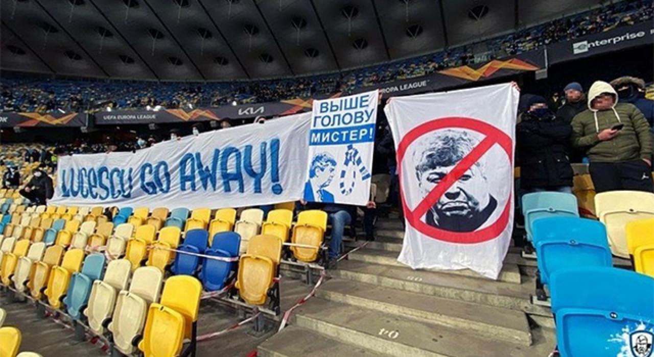 NTV Spor'un haberine göre, taraftarlar tarafından Kiev Olimpiyat Stadı’ndaki karşılaşmada 75 yaşındaki teknik adamın fotoğrafıyla birlikte "Çingeneleri istemiyoruz" ve "Lucescu evine dön" yazan pankartlar açıldı.