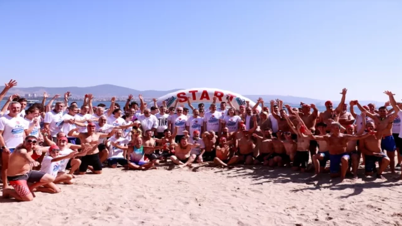 Gölcük'teki Değirmendere sahilinden İzmit Körfezi'ne atlayan yüzücüler, 2 bin 622 metre kulaç atarak Derince sahilindeki bitiş noktasında karaya çıktı.