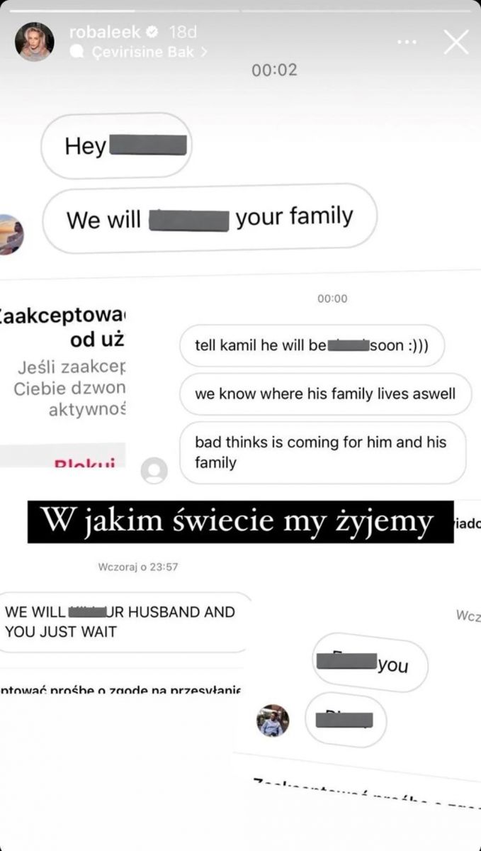 Galatasaray maçı sonrasında birçok kullanıcının küfürlü ve tehdit yazılarını paylaşan Dominika Robak, ”Nasıl bir dünyada yaşıyoruz” ifadelerini kullandı.