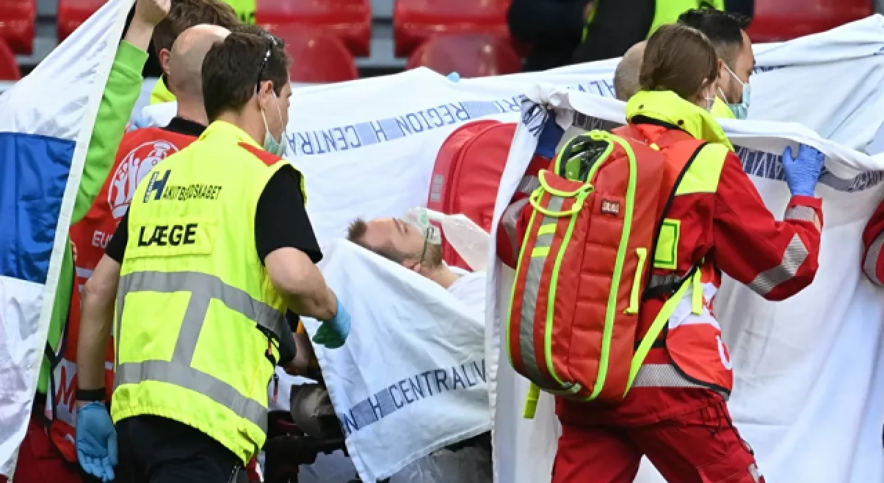 Mücadelenin ilk yarısında son anlara girilirken taç çizgisi yakınlarında bir anda yığılan Eriksen bilincini kaybetti.