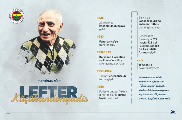 Fenerbahçe Kulübü tarihinin gelmiş geçmiş en büyük ve sembol sporcularından biri olan Lefter Küçükandonyadis, 2012'de İstanbul'da 86 yaşında hayatını kaybetti.