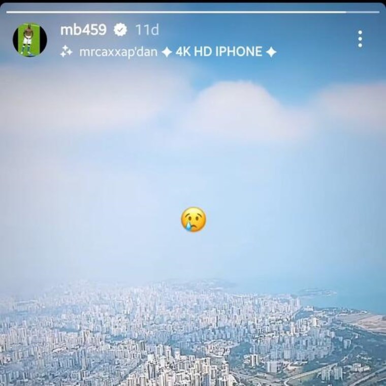 Balotelli, üzdün bir emojiyle uçaktan paylaşım yaptı.